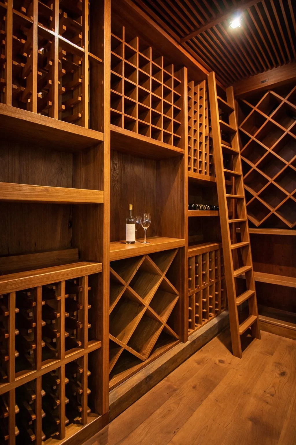A adega em madeira nobre climatizada oferece armazenamento para centenas de garrafas com escada de acesso dedicada. O bar privativo, revestido em granito preto e espelhos bisotados que conferem profundidade e elegância ao ambiente, completa a infraestrutura de entretenimento sofisticado.