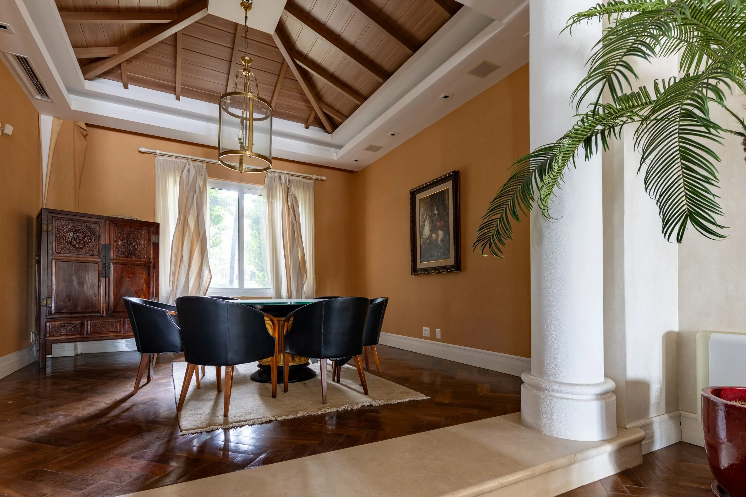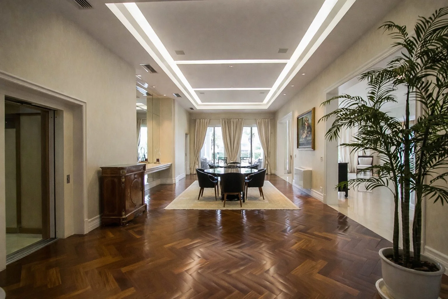 Sala de estar com lareira, sala de jogos, sala de chá em estilo marroquino e imponente sala de jantar. Todos os ambientes são climatizados individualmente, com sistema de som integrado, dimerização individual e automação completa controlável pelo iPhone: iluminação, ar-condicionado, cortinas e som. Dois lavabos complementam o circuito social.